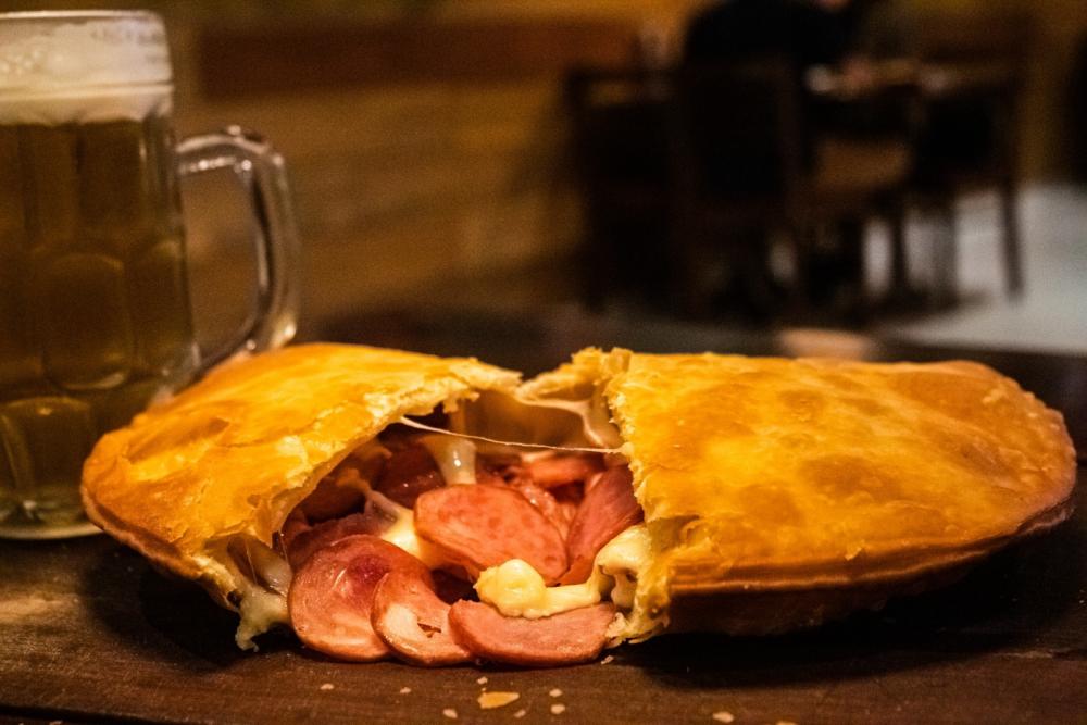 Molho, muçarela, requeijão, calabresa, cebola e orégano.