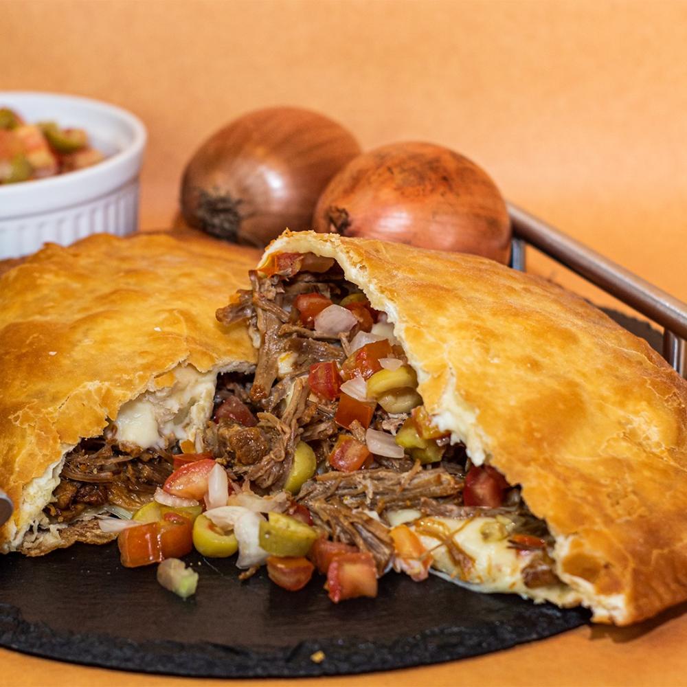 Molho, muçarela, requeijão, costela desfiada, vinagrete e orégano.